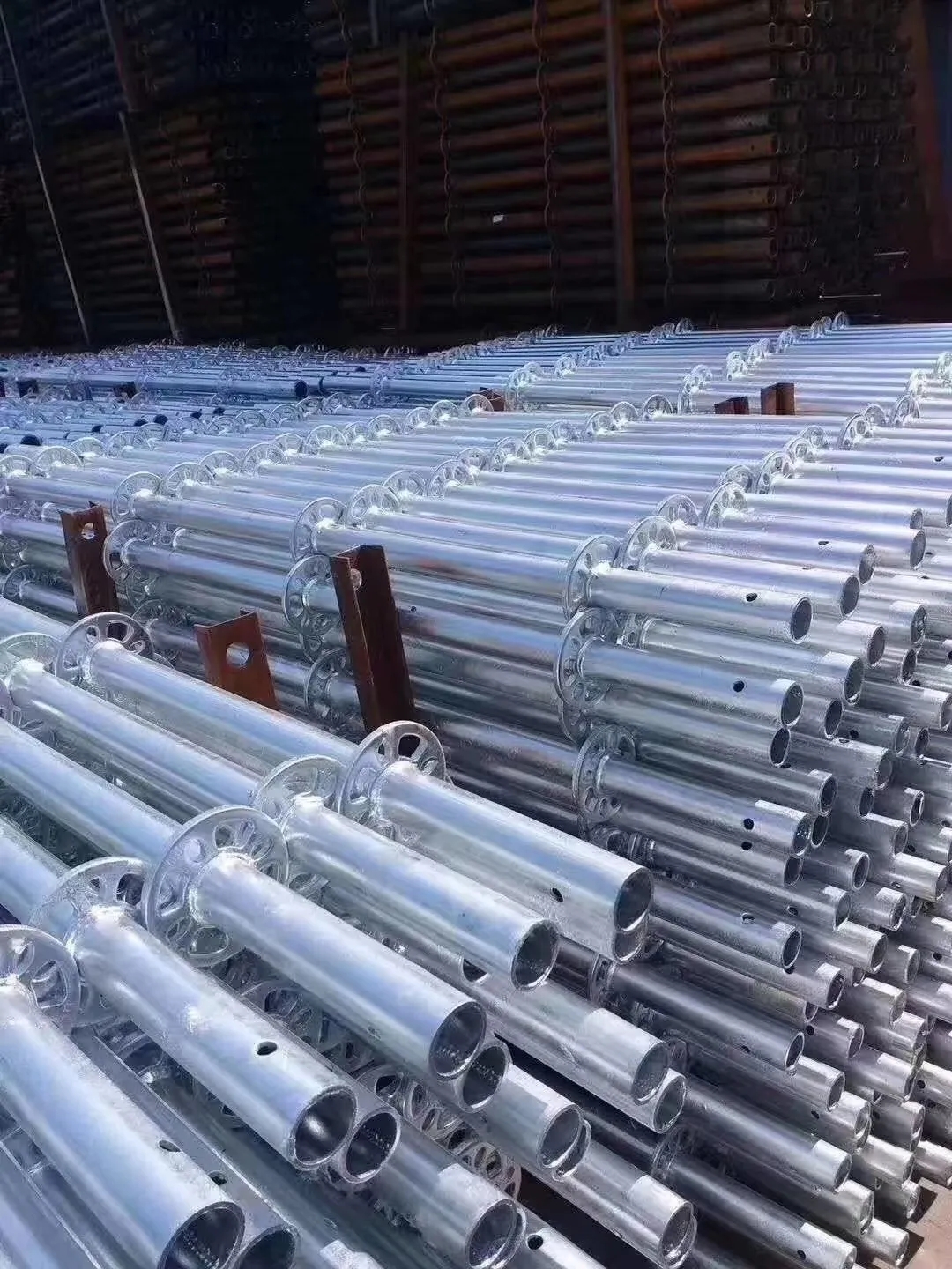 公司根據(jù)行業(yè)要求與趨勢,不斷調(diào)整產(chǎn)業(yè)結(jié)構(gòu),逐步增加產(chǎn)品類別,于2020年新增加了盤扣式腳手架生產(chǎn)線,可為客戶提供盤扣式腳手架的生產(chǎn)、銷售、倉儲和貨運服務。公司現(xiàn)擁有盤扣立管自動焊接設(shè)備10套,橫管自動焊接設(shè)備20套,可日產(chǎn)盤扣式腳手架500余噸。通過發(fā)揮公司資源優(yōu)勢,從精密管制造、全自動氬弧焊接、熱鍍鋅防腐處理到物流倉儲配送,實現(xiàn)一條龍式的全流程自主生產(chǎn),能夠確保產(chǎn)品質(zhì)量、縮短加工周期、保證及時交貨、降低客戶采購成本、提升競爭優(yōu)勢。
